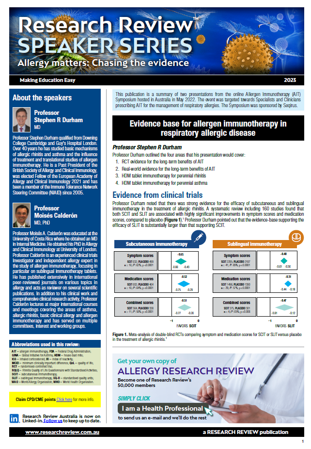 We’re delighted to add a summary of two presentations from the online Allergen Immunotherapy Symposium titled: Allergy matters: Chasing the evidence.