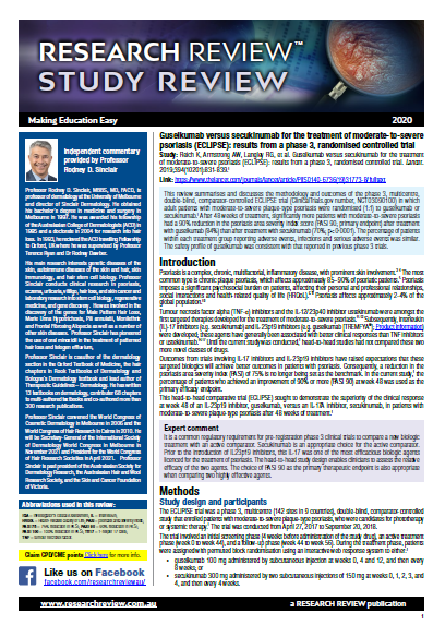 This review is of the ECLIPSE study: Guselkumab versus secukinumab for the treatment of moderate-to-severe psoriasis.