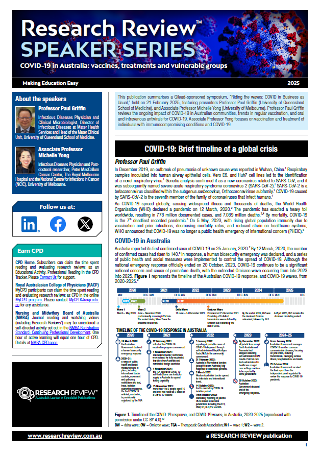 We’re delighted to add a summary from the Gilead-sponsored symposium, “Riding the waves: COVID in Business as Usual,” featuring presenters Professor Paul Griffin, Infectious Diseases Physician and Clinical Microbiologist, Mater Health Services and Associate Professor Michelle Yong, Infectious Diseases Physician and Post-doctoral researcher, Peter MacCallum Cancer Centre.