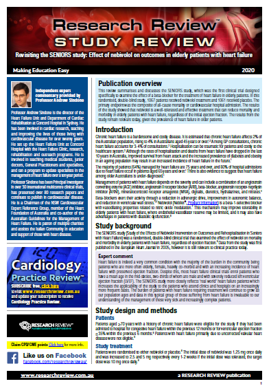 This review summarises the SENIORS study, the first clinical trial designed specifically to examine the effect of a beta-blocker for the treatment of heart failure in elderly patients. Although first published a few years ago, it still has relevance today.