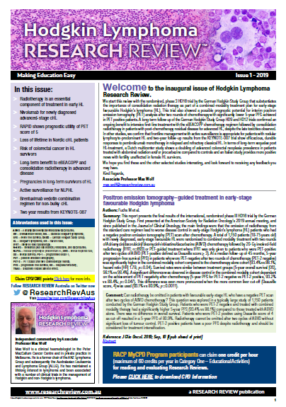 Hodgkin Lymphoma Research Review is a unique Australian publication bringing you some of the most important research from around the world.