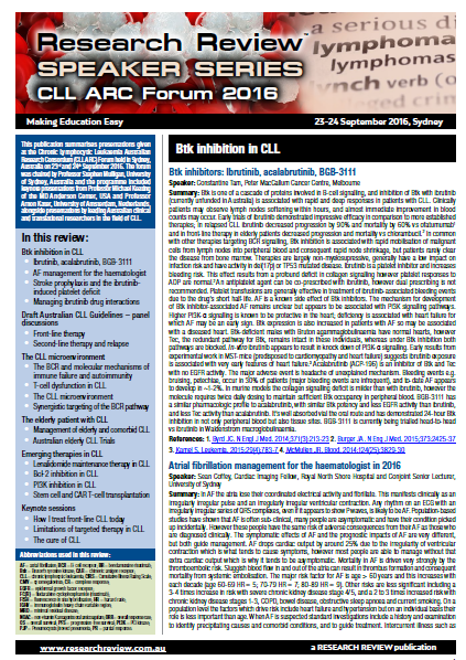 This publication summarises presentations given Btk inhibition in CLL at the Chronic Lymphocytic Leukaemia Australian Research Consortium (CLL ARC) Forum held in Sydney, Australia on 23rd and 24th September 2016.