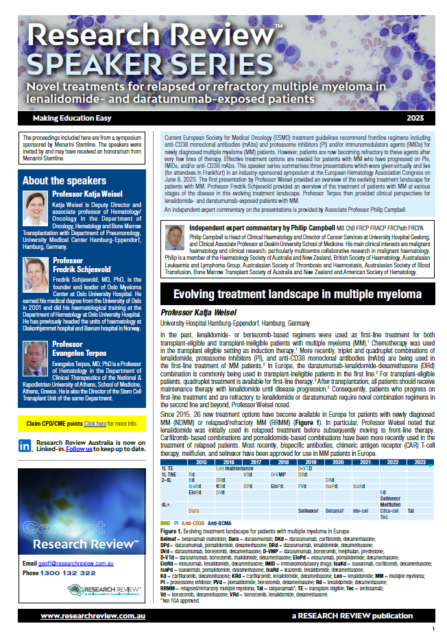 We’re delighted to add a summary of a recent event titled: Novel treatments for relapsed or refractory multiple myeloma in lenalidomide- and daratumumab- exposed patients.