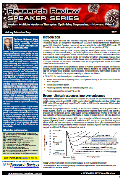 This review is a summary of a recent event on modern multiple myeloma therapies: optimising sequencing — how and when?