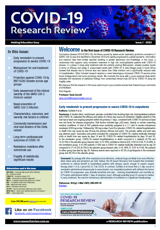 View back issues of COVID 19 Research Review publications please click here. Also below are reviews of recent international medical conferences, new medicines, speaker events and other relevant publications.