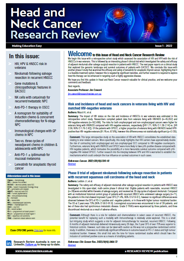 View back issues of Head & Neck Cancer Research Review publications please click