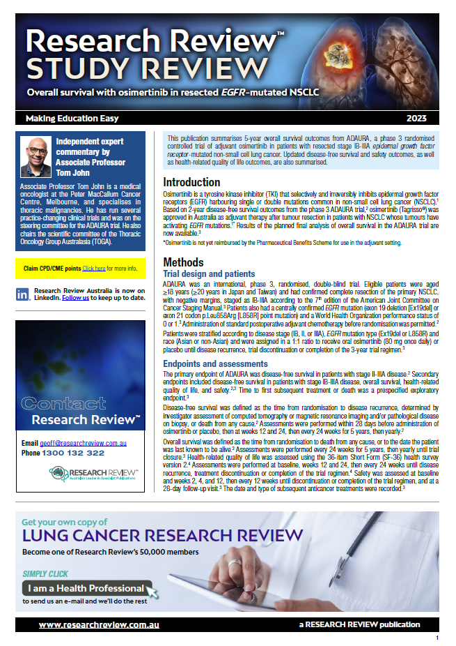 Independent commentary is provided by Associate Professor Tom John, a medical oncologist at the Peter MacCallum Cancer Centre, Melbourne who specialises in thoracic malignancies.