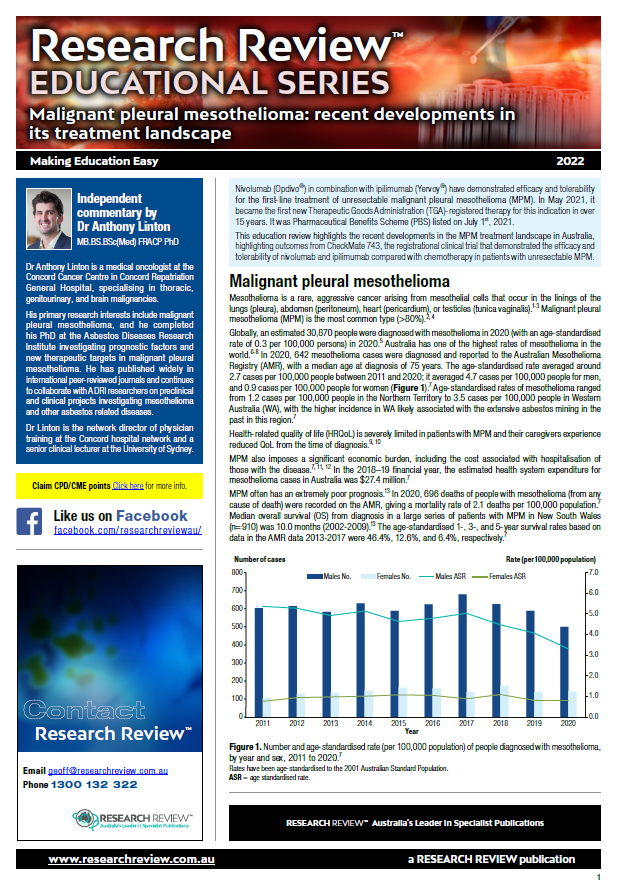 The review includes guiding commentary from Associate Professor Louise Nott, a specialist medical oncologist at the Icon Cancer Centre and Royal Hobart Hospital.