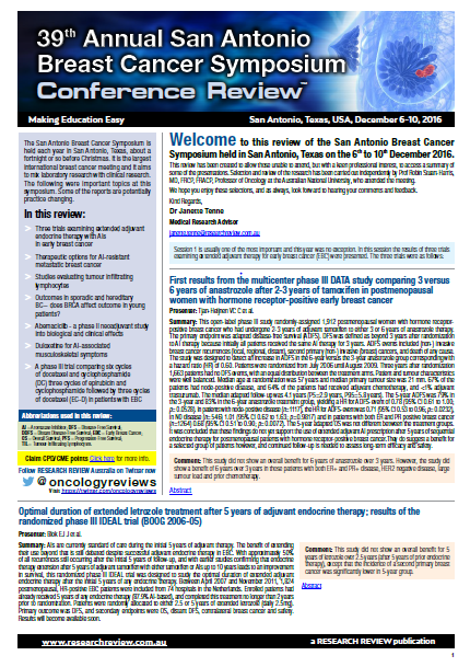 San Antonio Breast Cancer Symposium - 2016 Conference Review