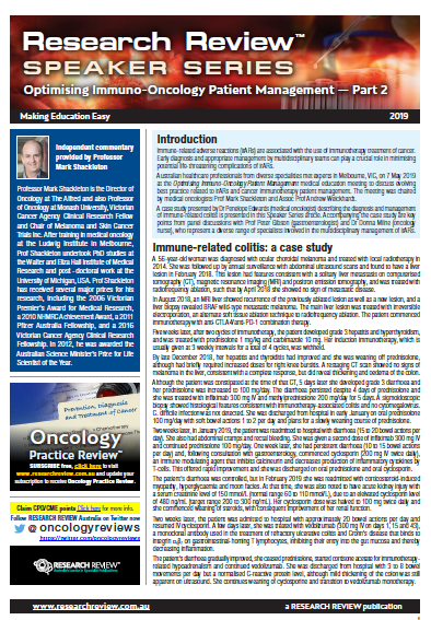 This review is a summary of a recent event in Melbourne to discuss evolving best practice related to irARs and cancer immunotherapy patient management.