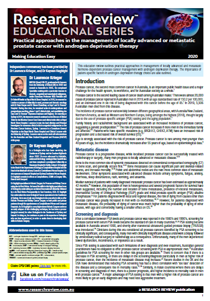 The review includes guiding commentary from Dr Laurence Krieger, a Consultant General Physician at the Royal North Shore Hospital and Clinical Lecturer with the University of Sydney and Dr Kayvan Haghighi, a Urologist and Head of the Department of Urology at Campbelltown Hospital and the Head of the Medical Advisory Council at Cambelltown Private Hospital.