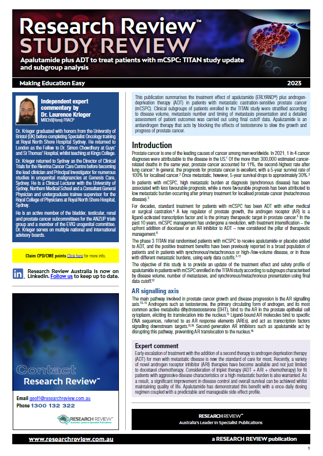 As part of our ongoing aim to bring you reports of innovative developments, we have added a review of the recent Titan study which explores apalutamide use plus androgen-deprivation therapy in patients with metastatic castration-sensitive prostate cancer.