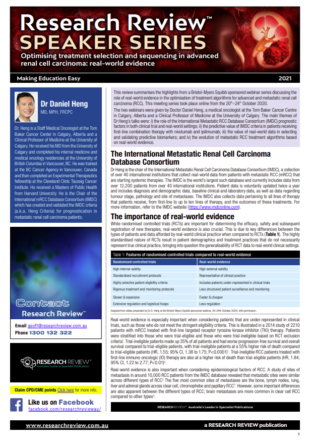 This review is a summary of a recent speaker event on Optimising treatment selection and sequencing in advanced renal cell carcinoma: real-world evidence.