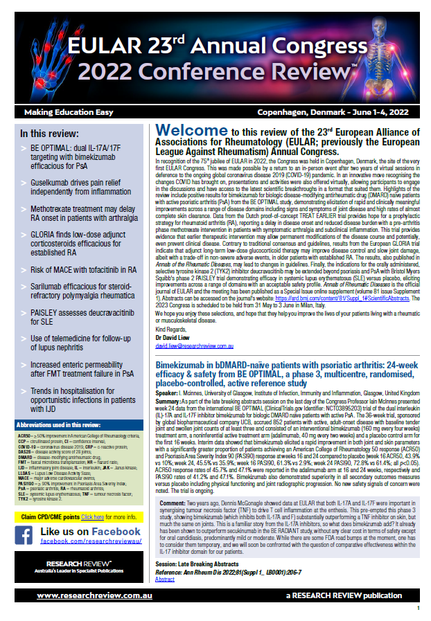 BE OPTIMAL: dual IL-17A/17F targeting with bimekizumab efficacious for PsA