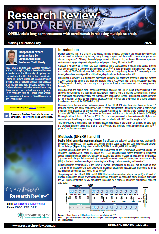 Independent commentary for the review has been provided by Clinical Associate Professor Todd Hardy, Senior Staff Specialist Neurologist at Concord Hospital, Clinical Associate Professor in Medicine at the University of Sydney.
