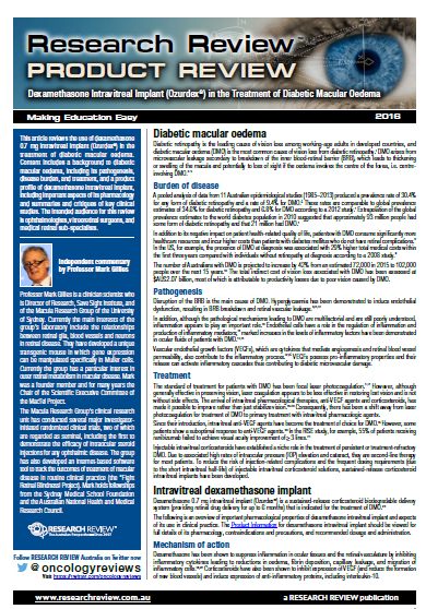 This Product Review focusses on dexamethasone intravitreal implant in the treatment of diabetic macular oedema.