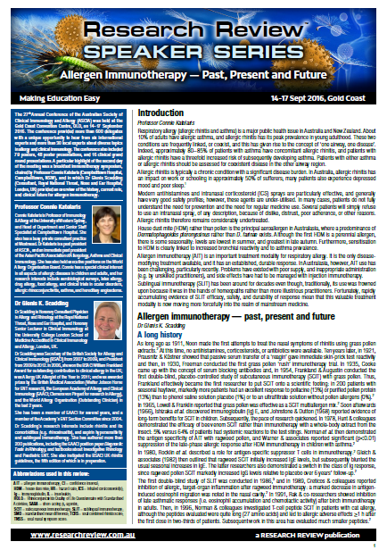This review is a summary of a presentation delivered by Dr Glenis Scadding, Honorary Consultant Physician in Allergy and Rhinology at the Royal National Throat, Nose and Ear Hospital, at the University College London School of Medicine, UK. The discussion was Chaired and opened by Professor Connie Katelaris.