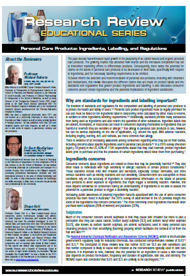 Professor Mike Roberts (Queensland & Adelaide) and Professor Shaun Holt (New Zealand) and Dr Brett MacFarlane from The Australian College of Pharmacy provided independent expert commentary on this review.