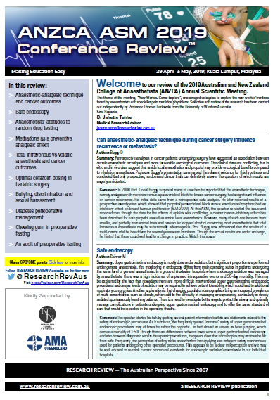 ANZCA 2019 Conference Review, reviewed by Professor Thomas Ledowski