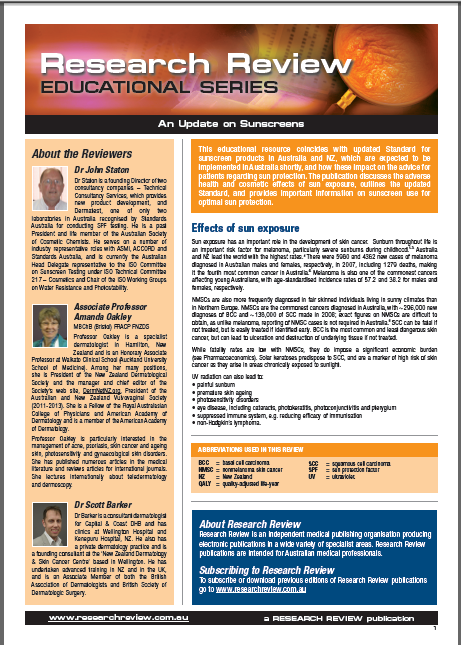 This review coincides with the introduction of the new Australian/New Zealand standard for sunscreens. The standard is now used by manufacturers of sunscreens in Australia, and sets out requirements for testing and labelling of SPF’s to help towards preve