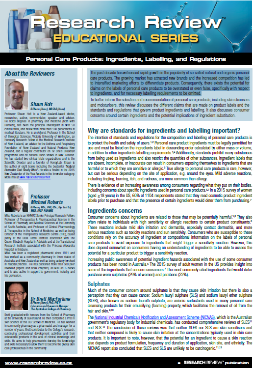To better inform the selection and recommendation of personal care products, including skin cleansers and moisturisers, this review discusses the different claims that are made on product labels and the standards and regulations that govern product ingredients and labelling. It also discusses consumer concerns around certain ingredients and the potential implications of ingredient substitution.
