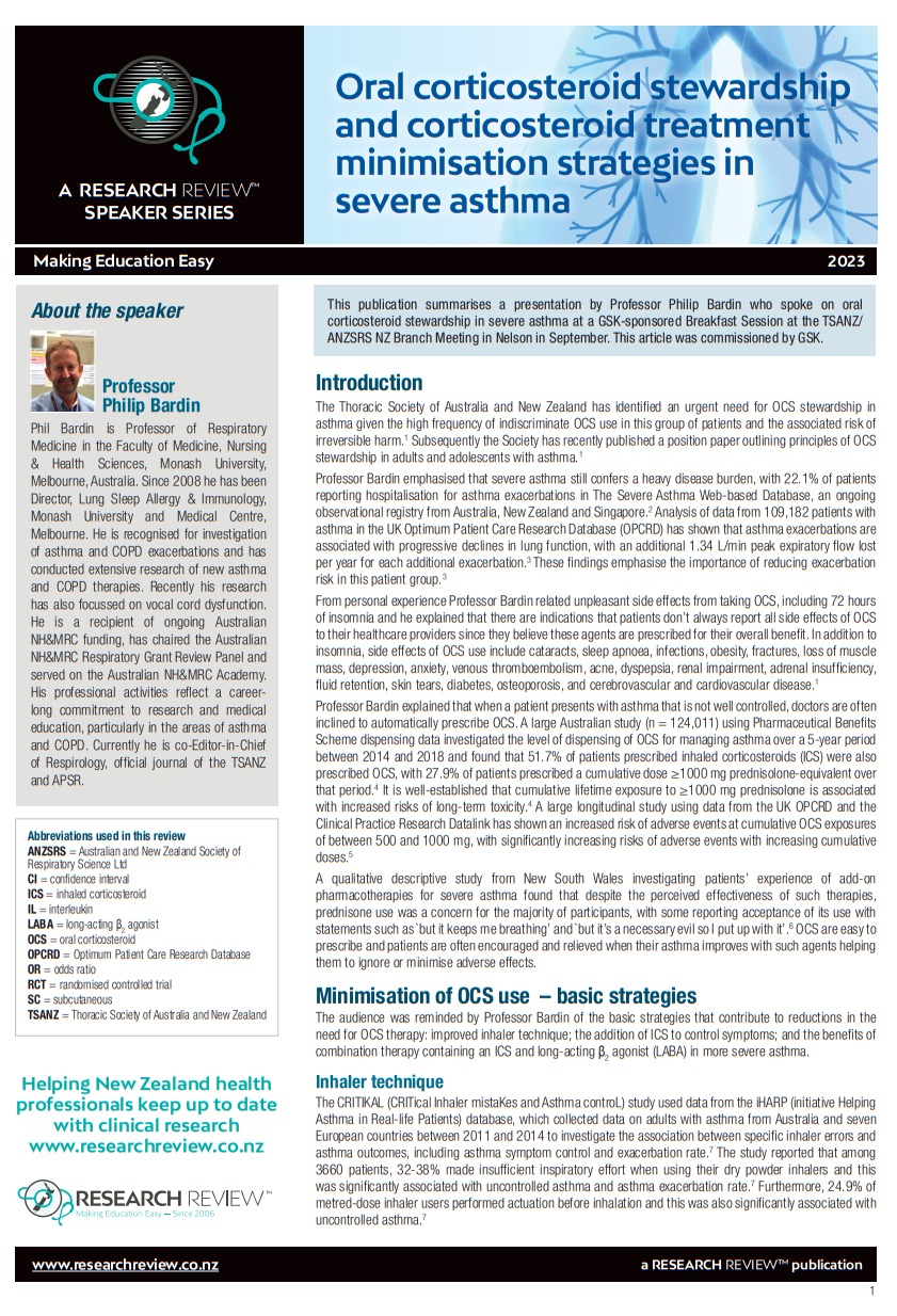 corticosteroid stewardship in severe asthma at a GSK-sponsored Breakfast Session at the TSANZ/