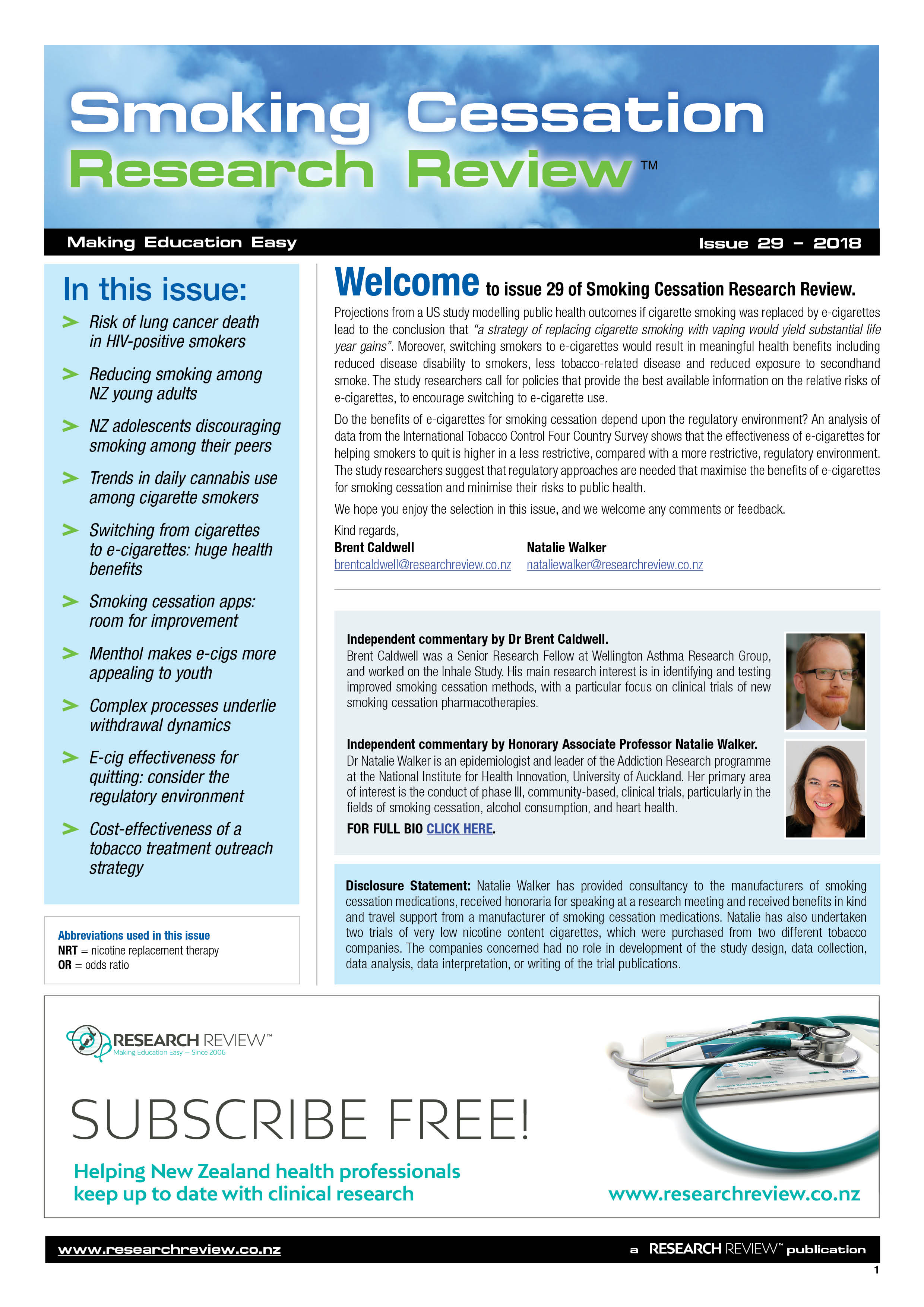 Research Review publications are free to receive for all NZ health professionals.