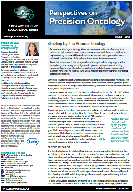 The studies summarised in this issue provide a brief snapshot of the many ways in which appropriate genomic testing, at the right time for patients, can impact on their existing management and provide information for family members. In forthcoming issues, we will explore in more detail the potential gains we can make for patients through molecular testing and precision medicine.