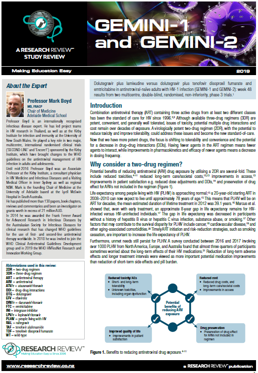 Dolutegravir plus lamivudine versus dolutegravir plus tenofovir disoproxil fumarate and emtricitabine in antiretroviral-naïve adults with HIV-1 infection (GEMINI-1 and GEMINI-2): week 48 results from two multicentre, double-blind, randomised, non-inferiority, phase 3 trials.