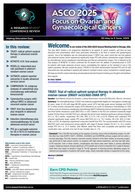 - TRUST: radical upfront surgical therapy in advanced ovarian cancer
